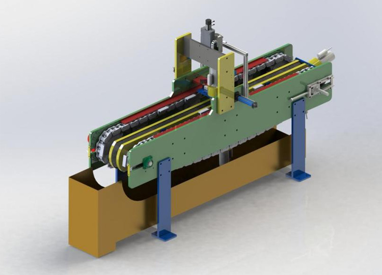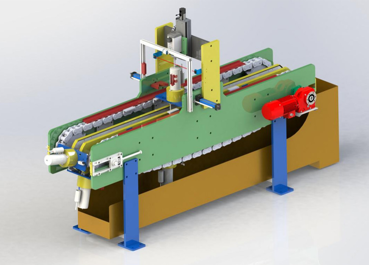 進料采用V型(xíng)鏈板輸送,壓縮機不會在麵板上滾動,保證了(le)輸(shū)送的穩定性,該輸送裝(zhuāng)置實現了輸送的自動化,提高了工作效率,是一種高效的輸送裝置。