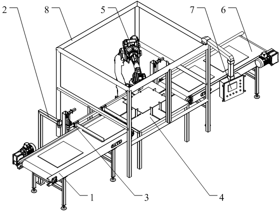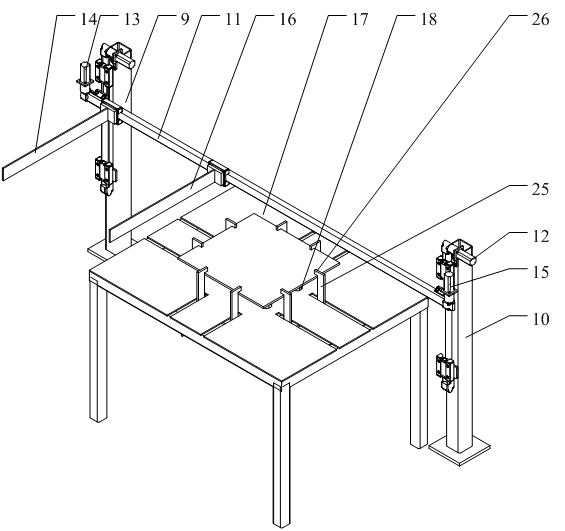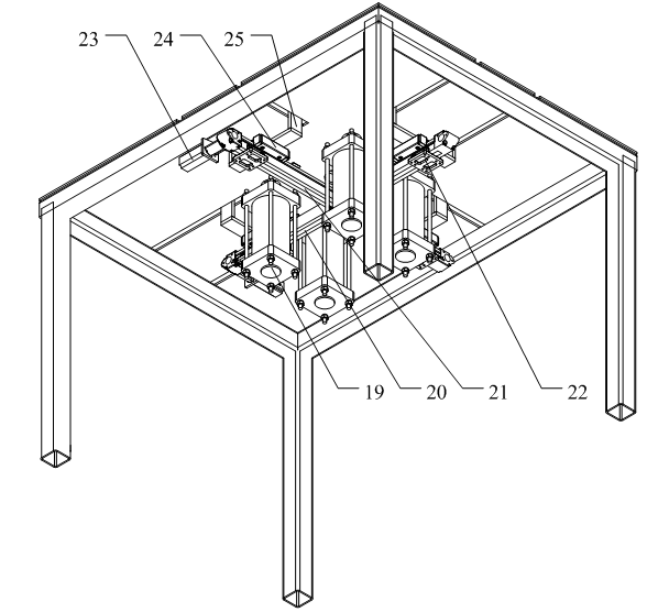 液晶顯示屏切割係統(tǒng),包括上料皮帶線、視覺識別係統、直線導軌搬運裝置、物料固定工裝、切割機械臂、下料皮帶線和控製器,直(zhí)線導軌搬運裝置(zhì)包括(kuò)第一支撐杆、第二支撐杆和水平杆,水平杆(gǎn)的凹槽(cáo)內設有上水平絲杆和下水平絲(sī)杆,上水平絲杆與第一夾杆連接,下(xià)水(shuǐ)平絲杆與第二夾杆連接(jiē);物料固定工裝(zhuāng)包括固定台,固定台上設有若(ruò)幹均(jun1)勻分布的(de)通孔(kǒng),通孔內均設有升降杆,固定台(tái)的底麵設有第(dì)一雙向絲杠和第二雙向絲杠。本實用新型采用上述結構的(de)液晶顯示屏切割係統,大大降低人(rén)工勞動強度,提高液晶電視屏幕的拆解效率。